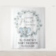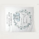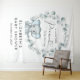 Um chá de bebê bonitinho bem-vindo tapeçaria de fundo e proteção fotográfica apresentando "Um doce pequeno amendoim está a caminho" em uma mistura de simples tipografia e um roteiro de na moda com um inchaço cardíaco, e uma aquarela de um elefante de bebê azul pastel em uma coroa de verde-sábio eucalipto verde-verde. Personalize com o nome da futura mãe e a data do chá.