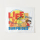 Veja este gráfico engraçado de Lucy pregando Charlie Brown com uma bola de futebol, mostrando as palavras: "A vida é cheio de surpresas".