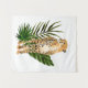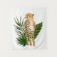 Cheetah Outlook I de Annie Warren. Um guepardo em um estilo aquarela se parece com folhas verdes tropicais ao fundo. | 164730Z