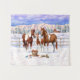 Uma família de cavalos de pintura suave no seu pasto de fazenda de inverno.