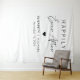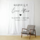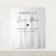 Boas-vindas e tapeçarias de fotos brancas, mostrando "Feliz Sempre Depois" em uma simples tipografia e um moderno roteiro de na moda, um coração, seus nomes e data de casamento.