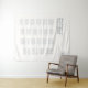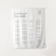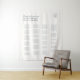 This chic and minimalist wedding seating chart tapestry features a contemporary set of fonts, couple monogram and alphabetical seating, against a light ivory background. Understated elegance for the modern and stylish couple.
