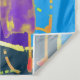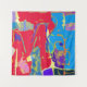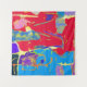 An energetic and bold expression of color, contrasting deep crimson red with bright cerulean blue. Scattered bursts of yellow, green, and purple dance across the canvas in a joyous, uninhibited rhythm. This dynamic piece is ideal for adding a striking pop of color to any room, or as a vibrant, eye-catching design on tapestries, cushions, and lifestyle accessories.