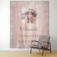 Uma tapeçaria de boas-vindas para um chá de bebê glamouroso, sprinkle. Um fundo metálico falso rosa dourado decorado com pó de brilho prateado falso. Personalize e adicione uma foto de alta qualidade e nome.