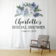 Um grande buquê floral azul empoeirado cria um belo pano de fundo para as fotografias da sua chuva de noiva. Três linhas de texto estão disponíveis para você personalizar.