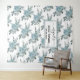 Tapeçaria de chuva de noiva floral com flores de aquarela azul empoeirado para casamento. Um belo design floral apresentando um padrão de um buquê de flores de cacto de aquarela azul empoeirado e folhas de suculentas, seus nomes em uma tipografia cursiva e a data do seu casamento.