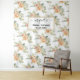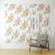 Tapeçaria de chuva de noiva floral flores aquarela pêssego para casamento. Um lindo design floral apresentando um padrão de um buquê de flores de cacto aquarela coral pêssego e folhas de suculentas, seus nomes em uma tipografia cursiva e a data do seu casamento.