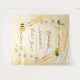 Tapeçaria elegante e divertida para chuva de noiva de verão. Fundo amarelo e branco com padrão de favo de mel. Com uma moldura geométrica em dourado falso. Decorado com flores tropicais amarelas claras e cremosas, hibiscos e alegres abelhas. Com o texto: Noiva para ser e o nome da noiva. Modelo para o nome da noiva e uma data. Pode ser usado como decoração de parede para a chuva de noiva ou como fundo para fotos.