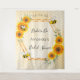 Tapeçaria elegante e divertida para chá de noiva de verão. Fundo amarelo e branco com padrão de favo de mel. Com uma moldura geométrica em dourado falso. Decorado com girassóis rústicos em aquarela amarelos e laranjas e abelhas felizes. Com o texto: Noiva para Abelha e o nome da noiva. Personalize e adicione o nome da noiva e uma data. Pode ser usado como decoração de parede para o chá de noiva ou como pano de fundo para fotos.