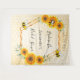 Tapeçaria elegante e divertida para chá de noiva de verão. Fundo amarelo e branco com padrão de favo de mel. Com uma moldura geométrica em dourado falso. Decorado com girassóis rústicos em aquarela amarelos e laranjas e abelhas felizes. Com o texto: Noiva Abelha e o nome da noiva. Personalize e adicione o nome da noiva e uma data. Pode ser usado como decoração de parede para o chá de noiva ou como pano de fundo para fotos.