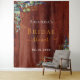 Madeira marrom rústica como fundo. Decorado com folhas de eucalipto verde água, raminhos, folhagens e folhas de ouro falso. Personalize e adicione o nome da noiva e uma data. Letras brancas e douradas. Pode ser usado como banner de boas-vindas de Chá de Panela, como decoração de parede de festa ou como fundo de cabine de fotos.