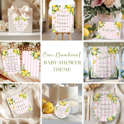 Transform your celebration with our Ciao Bambina Baby Shower Pink Lemons Backdrop! Designed with a chic pink pin stripe background and charming watercolor lemons, this Italian-inspired backdrop adds a touch of elegance and freshness to your baby shower. Perfect for photo booths, dessert tables, or as a statement wall, it beautifully complements your Ciao Bambina theme. Create a bright and joyful atmosphere that captures the essence of an Italian citrus celebration for your baby girl’s special day!