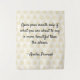 Linda tapeçaria com uma sábia citação: "Abra sua boca apenas se o que você está prestes a dizer é mais bonito que o silêncio." Atribuído a um antigo provérbio árabe. A tapeçaria tem um fundo bege claro, hexágono, colorido, para adicionar profundidade e interesse à design.