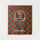 Crachá da crista Clan Forrester rodeado por uma correia e fivela sobre fundo tartano. Custom Text.