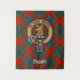 Clan Fraser do crachá da crista Lovat cercado por uma correia e fivela sobre fundo tartano. Texto personalizado.