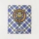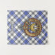 Crachá da crista Clan Hannay cercado por uma correia e fivela sobre fundo tartano. Custom Text.