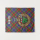 Crachá da crista Clan MacBeth cercado por uma correia e fivela sobre fundo tartano. Texto personalizado.