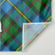 Crachá da crista Clan MacLeod rodeado por uma correia e fivela sobre o fundo de tartã de caça. Custom Text.