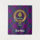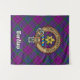 Crachá da crista Clan Wardlaw rodeado por uma correia e fivela sobre fundo tartano. Custom Text.