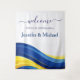 Welcome your guests in bold, modern style with this Cobalt Blue & Lemon Yellow Wave Wedding Welcome Sign tapestry, personalized with your names. Designed with flowing layers of rich cobalt, deep navy, and vibrant lemon yellow, the abstract wave pattern evokes movement, light, and celebration — creating a striking first impression from the moment guests arrive.