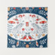 Banner decorativo com coelhos, flores e folhas sobre fundo azul. Arte popular. Banner reproduzindo coelhos, folhas e flores em um fundo azul, celebrando a exuberância da arte popular. Fundo azul, coelhos, folhas e flores brincam. A beleza da arte popular brilha claramente. fundo, padrão, abstrato, ilustração, textura, decoração, floral, poster, criativo, geométrico, site, ornamento, moderno, forma, têxtil, simetria, ornamental, artesanato, decorativa, coelho