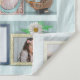 Você não encontrará uma maneira mais única e bonita de exibir as memórias da sua família ou do seu casamento do que este design de colagem de fotos com tema de praia. Esta obra de arte náutica linda inclui 19 das suas fotos personalizadas, feitas para parecer que estão em molduras em uma estante de madeira azul-teal clara. Suas fotos estão cercadas por livros antigos, um relógio e lembranças da beira-mar, incluindo: conchas, flores, coral, uma gaivota, um navio modelo, um abacaxi, um farol, uma estrela-do-mar, um peixe e uma âncora. Seu monograma fica na prateleira do meio. As cores são principalmente azul-teal, azul-marinho, creme e rosa coral claro com toques de latão falso, dourado, marrom, verde e vermelho. PARA PERSONALIZAR: Use os modelos simples. Basta seguir as instruções e suas fotos preencherão as molduras. Dica: Qualquer forma de foto preencherá cada moldura (então, se você enviar uma imagem quadr