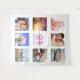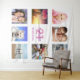 Para um aniversário de 21 anos (ou qualquer idade), celebrando sua vida com uma colagem de 8 fotos de seus amigos, familiares, interesses ou animais de estimação. Personalize e adicione seu nome, 21 anos e uma data. Data de nascimento ou data da festa de aniversário. Letras coloridas em rosa e roxo. Cor de fundo branco chic. Use como decoração de parede de festa, banner de boas-vindas e como cabine de fotos, fundo de fotos.