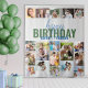 Cena de fundo de aniversário com colagem de fotos personalizada e nome. Peça substancial de decoração de festa de aniversário, ótimo ponto de discussão e cenário perfeito para fotobooth ou entrada de boas-vindas. "Feliz Aniversário" é escrito em letra moderna e casual e tipografia em negrito. O modelo está pronto para você adicionar suas fotos em linhas, trabalhando da esquerda para a direita e exibirá suas fotos em uma combinação de formatos quadrados, retrato e paisagem. Possui uma paleta de cores cinza, azul e verde, mas, se quiser alterar as cores, clique em "personalizar mais" ou me envie uma mensagem para obter ajuda.