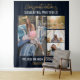 Pano de fundo de photobooth de festa de formatura com colagem de fotos em script dourado para o novo formando. Apresenta 4 fotos do graduado e a palavra "Parabéns" está definida. Adicione o nome, escola, faculdade e ano de formatura clicando no botão "Personalizar".