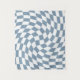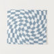 Produtos modernos para festa de casamento com tema boêmio em azul empoeirado. Design retrô de xadrez distorcido e elegante, pratos de papel xadrez distorcidos em azul empoeirado e branco.