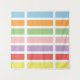 Padrão geométrico linear, retangular, listrado, de tons de arco-íris pastel azuis, laranja, verde, rosa, roxo, vermelho e amarelo.