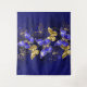 Composição de borboletas luxuosas de safira e joias de ouro em fundo azul texturizado.