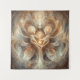 Representação intrincada de abstrato de uma figura nutritiva que abraça duas crianças, composta por linhas fluentes e formas orgânicas. A imagem irradia calor e harmonia através de sua delicada mistura de elementos da terra e do etéreo, com órbitas brilhando suaves simbolizando a vida e o crescimento. Ao redor das figuras centrais estão padrões que lembram a beleza da natureza, enfatizando os temas do amor, da proteção e da interconectividade da vida.