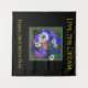 Atração floral animada e divertida. Do meio da chuva roxa surgem margaridas.