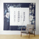 Este pano de fundo de casamento country floral em aquarela com luzes de corda azul marinho rústico elegante pode ser personalizado com suas informações em tipografia chic. Concebido por Thisisnotme©