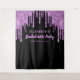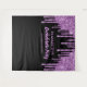 Tapeçaria personalizada chic e divertida para fotobooth para sua despedida de solteira, apresentando brilho roxo falso brilhante pingando dos cantos contra um fundo preto e "Festa de Solteira" em uma fonte roxa. Você pode personalizar ainda mais com seu nome e data da festa.