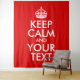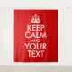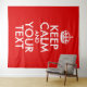 Personalize o design clássico com a aparência de "Manter calma e continuar ligado". Edite o texto para criar sua própria aparição de tapeçaria personalizada. Você pode personalizar a cor vermelha de fundo brilhante. Há outros estilos de fonte. Adicione sua própria mensagem de texto inspiradora, motivacional ou engraçada.