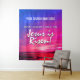 Tapete de Páscoa da Igreja CRISTO JESUS RESSUSCITOU. Tapete personalizado de Páscoa para igreja, mostrando uma imagem de paisagem panorâmica do pôr do sol com a mensagem inspiradora: A MORTE NÃO PÔDE DETÊ-LO, JESUS RESSUSCITOU! Um grande lembrete para celebrar o Domingo da Ressurreição e para qualquer época do ano. Este é um pano de fundo inspirador da Escritura Cristã para a igreja, mostrando uma bela imagem do pôr do sol em tons de roxo e rosa. Na borda superior, há um espaço OPCIONAL para o nome, que é PERSONALIZÁVEL, para que você possa adicionar o nome da sua igreja ou família, ou simplesmente excluir. Este tapete cristão seria um ótimo pano de fundo para sua casa, igreja ou organização de fé. Outros versículos populares das Escrituras estão disponíveis. Por favor, entre em contato se você gostaria de adicionar o logotipo da sua igreja ou