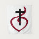 Cruz Cristã Simples, esta design design-Cristã apresenta uma Cruz Cristã simples com um coração vermelho, em vermelho e preto.