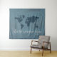 Deixe a aventura começar o design de texto com a decoração do mapa do mundo no grunge, fundo azul