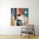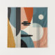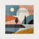 Uma paisagem abstrato de uma cena do deserto com linhas e formas em tons de marrom, laranja, turquesa, bege, bronzeado e preto.