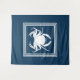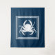 Design com tema aquático com decoração de caranguejo em quadrados distribuídos sobre fundo azul