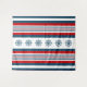 Design com temas náuticos com faixas vermelhas e brancas e decoração de bússolas