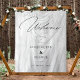 Bem-vindos aos seus hóspedes com este design elegante, com um fundo de madeira rústico e uma tipografia clássica. Personalize com seus nomes, data de casamento e local para criar uma lembrança memorável que dá o tom para seu dia especial. Cinzas/Cinzas Clássicas Modernas, Monogramas de textura de madeira russa negra e branca, Casamento no inverno Decor Grande Fundo de Boas-vindas / Foto Booth / Foto Prop Tapeçaria Desenhada / original obra de arte de gorda*fa*tin. —