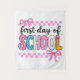 Celebre o entusiasmo de um novo ano escolar com este adorável design do "Primeiro Dia da Escola". Apresentando letras com padrão, arcos cor-de-rosa e cores alegres, ele captura perfeitamente a alegria de começar fresco em estilo. Ideal para estudantes, professores e pais, este trabalho de arte divertido e colorido é excelente para itens temáticos na escola, decorações na sala de aula e guardas de primeiro dia.