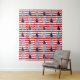 Design náutica com barco à vela e decoração de bússolas em fundo listrado vermelho e branco