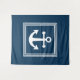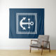 Design com temas náuticos com decoração de âncora em quadrados com faixas de fundo em fundo azul