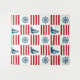 Design náutica com barco à vela e decoração de bússolas em fundo listrado vermelho e branco