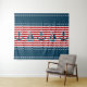 Design náutica com barco à vela e decoração da âncora em fundo listrado vermelho e branco