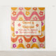 Esta é uma tapeçaria personalizada da festa de despedida de solteira retrô floral groovy com flores retrô muito fofas em ondas abstratas groovy em rosa, laranja, amarelo e roxo. você pode alterar os detalhes e torná-lo seu usando o modelo personalizar.